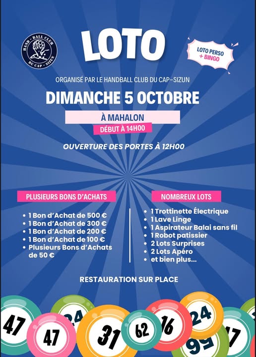 Le Handball Club du Cap-Sizun organise un loto le dimanche 5 octobre au centre multiactivités de Mahalon. Nombreux bons d’achats (de 50 à 500 €), nombreux […]